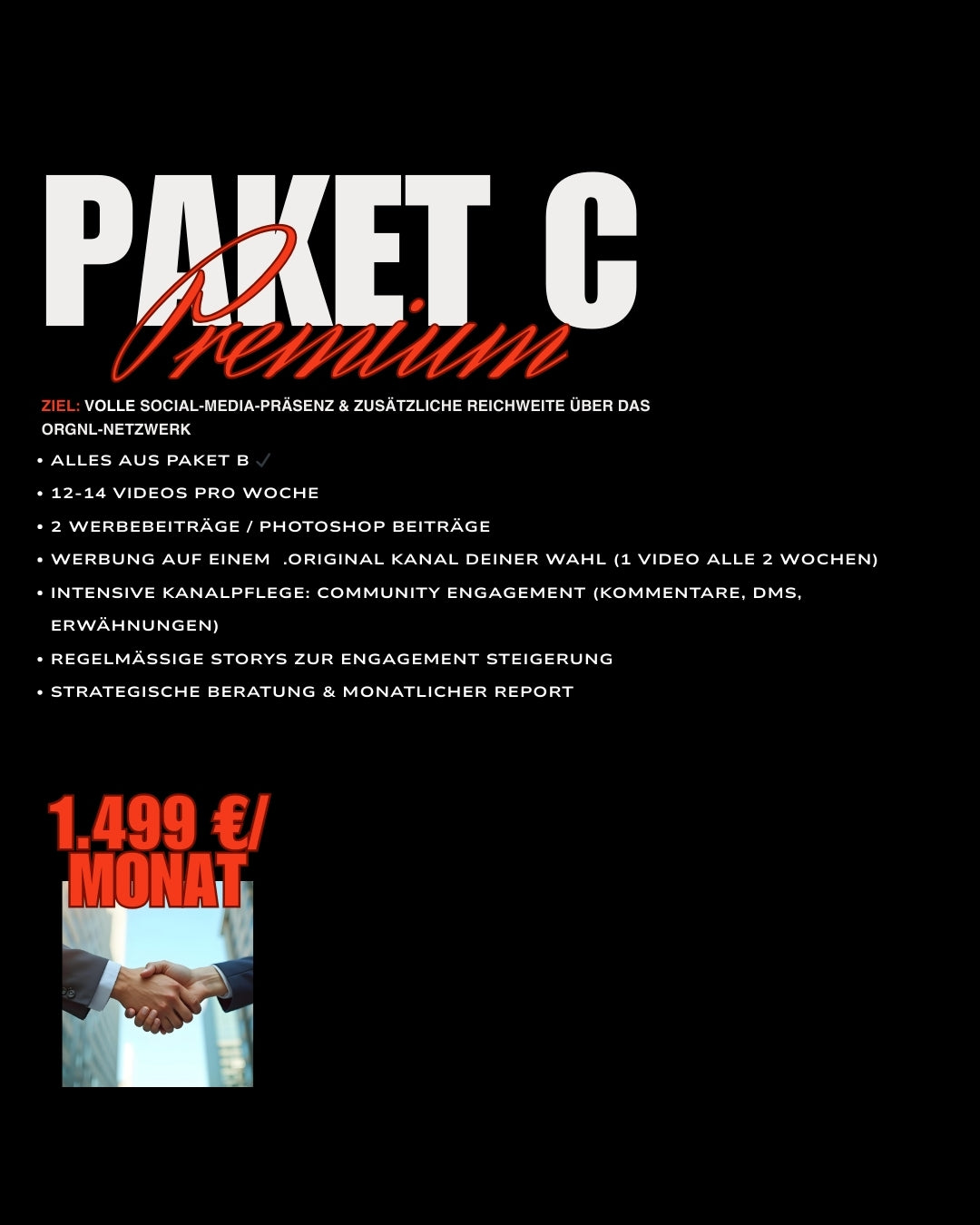 Wir übernehmen Planung, Content & Reichweite. Du bekommst Sichtbarkeit, Anfragen und Kunden.